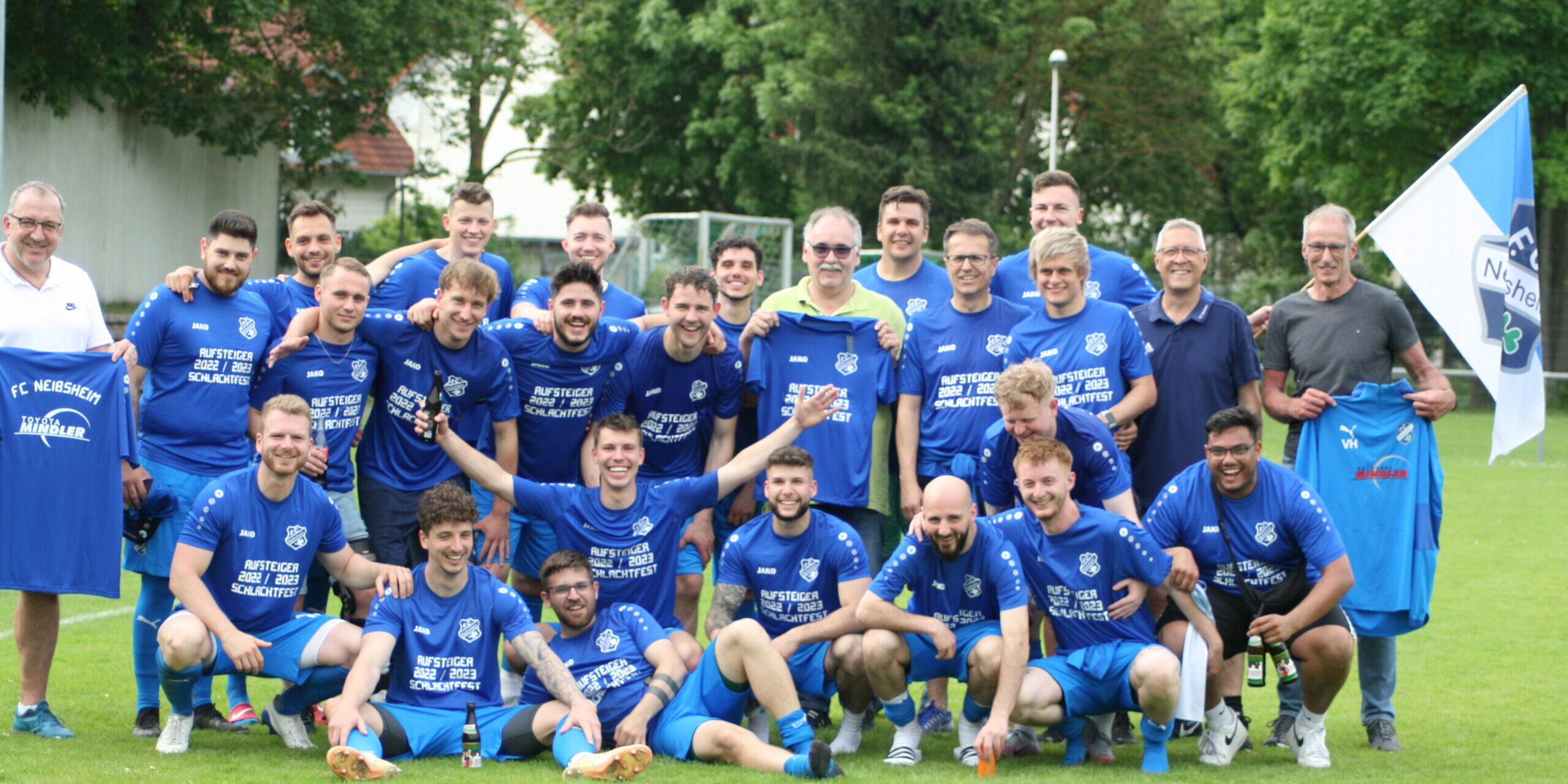 Nach einem Auswärtssieg beim TSV Rinklingen steht der FC Neibsheim als Aufsteiger in die Fußball-Kreisliga fest. Am vorletzten Spieltag pilgerten zahlreiche blau-weiße Fußballfans zum Rinklinger Sportgelände, um die Elf von Trainer Sakib Nadarevic und Co-Trainer Philipp Hauk zu unterstützen. Der FCN begann schwungvoll mit viel Zug zum Rinklinger Tor und kam in den ersten zehn Minuten zu zwei Großchancen durch Florian Strobel und Nico Metzner. Beide verfehlten das Gehäuse jedoch knapp. Nach 13 Spielminute flankte Leonard Zarol in den TSV-Strafraum und Florian Strobel scheiterte mit seiner Direktabnahme an Rinklingens Torhüter Alexa Grcic. Ein Treffer wollte nicht fallen und die Hausherren wehrten sich verbissen gegen den Aufstiegsanwärter aus Neibsheim. Nach einer halben Stunde bekam der FCN nach einer Ecke den Ball nicht aus der Gefahrenzone und Rinklingens Marco Senel drosch das Leder von der Strafraumkante aus an die Querlatte. Kurz darauf musste beim FCN Lukas Hachtel verletzt vom Feld, für ihn kam Marcel Löffler, der eine fehlerfreie Leistung zeigte und defensiv von Rinklingens Angreifern nicht zu überwinden war. Nach dem Seitenwechsel brauchten beide Teams 15 Minuten, um wieder in ihren Spielfluss zu finden. Der TSV bekam in der 60. Minute einen Freistoß aus 17 Metern zugesprochen und Neibsheims Torwart Sascha Seiler wehrte den platzierten Flachschuss mit einem tollen Reflex ab. Im Gegenzug legte sich Florian Strobel 20 Meter vor dem Tor den Ball zum direkten Freistoß zurecht und knallte das Leder unhaltbar zum Neibsheimer 1:0 in die Maschen (63. Minute). Jetzt ließ die Gegenwehr bei der Heimelf spürbar nach und die Kräfte schwanden zusehends. Den nächsten Freistoß führte Artem Barsukov in der 73. Minute sehenswert aus, denn er flankte gefühlvoll zu Florian Strobel, der mit seinem Kopfball den 2:0-Endstand für Neibsheim erzielte. Mit seinem Doppelpack erhöhte der Torjäger sein Trefferkonto auf 21. Ein Pluspunkt bei den Gästen war auch die starke Auswechselbank, denn die in der Schlussphase eingewechselten Andreas Frank, Timo Sebold und Ilir Shema brachten Schwung, Spielstärke und frische Energie auf das Spielfeld. Durch den Auswärtssieg eroberte der FC Neibsheim die Tabellenspitze wieder zurück und steht zusammen mit dem Zweitplatzierten VfR Kronau bereits jetzt als Aufsteiger in die Kreisliga fest. Am letzten Spieltag empfängt der FCN im Talbachstadion den FC Untergrombach. Anpfiff am Pfingstmontag, 29. Mai 2023 ist um 17 Uhr nachmittags.