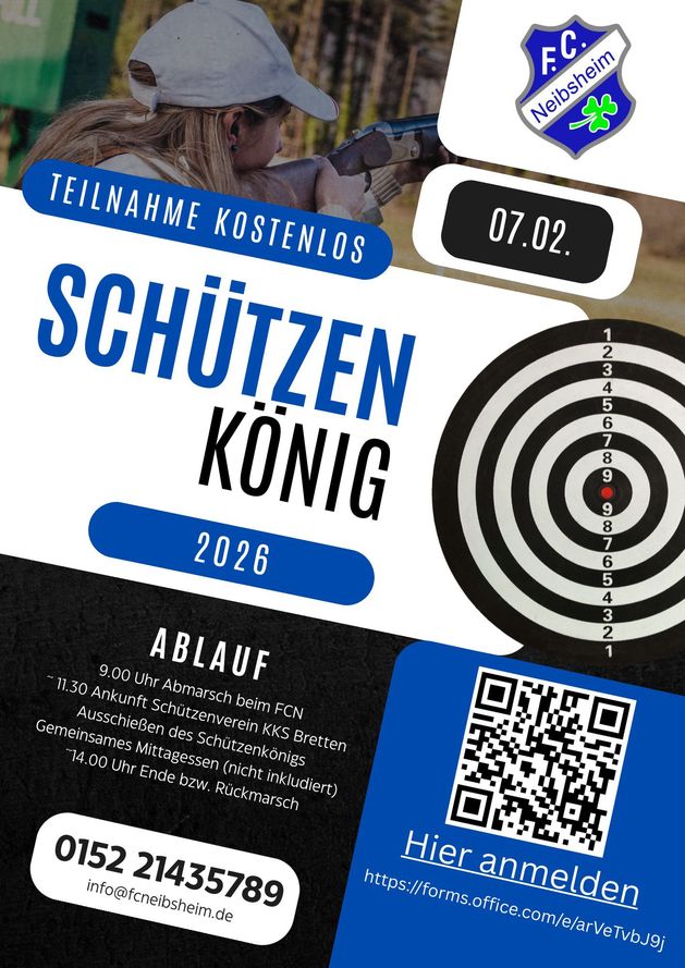 Beim FC Neibsheim lebt eine alte Tradition wieder auf, denn nach mehreren Jahren Pause soll wieder der FCN-Schützenkönig oder die FCN-Schützenkönigin ermittelt werden. Am Samstag, 07. Februar ist um 9 Uhr Treffpunkt auf dem Neibsheimer Sportgelände. Von dort wird zum Brettener Schützenhaus gewandert, unterwegs gibt es eine gemütliche Verpflegungsstation. Gegen 11.30 Uhr soll beim Schützenverein…