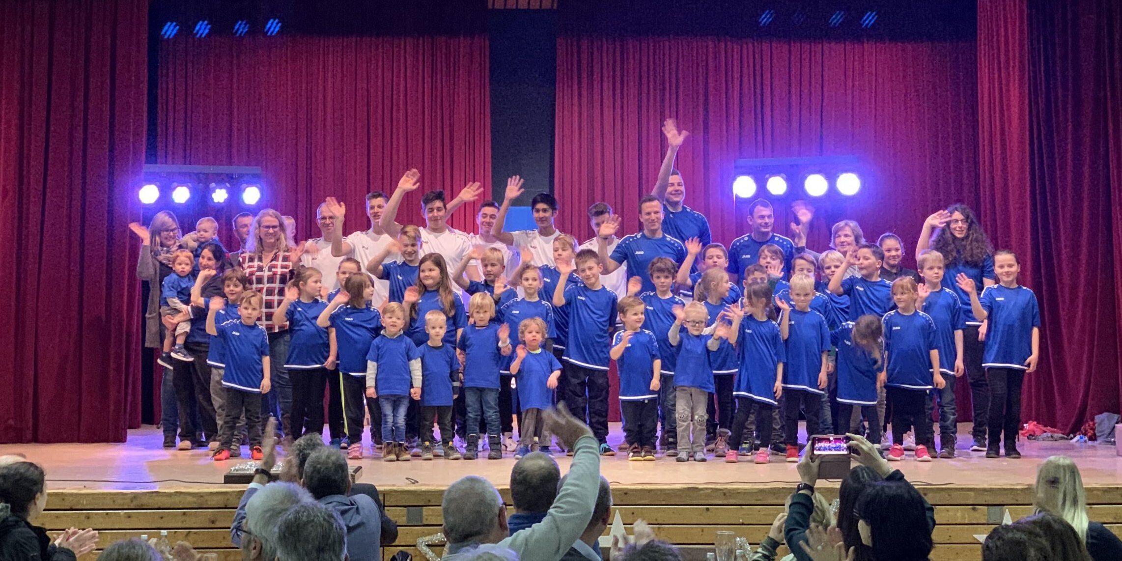 Alle zwei Jahre lädt der FC Neibsheim zur Winterfeier in die Talbachhalle ein und auch diesmal war die Halle voll besetzt. Das Programm wurde von einem Bläserensemble des Musikvereins Neibsheim eröffnet. Danach begrüßte der 1. Vorsitzende Rainer Hauk die Anwesenden. Neben Bürgermeister Michael Nöltner, Ortsvorsteher Michael Koch und den FC-Ehrenvorständen Bertold Gerweck und Lothar Rinderspacher waren bereits eine Stunde vor Beginn Jung und Alt in die Talbachhalle geströmt, um das bunte Unterhaltungsprogramm zu erleben. In seiner Ansprache stellte Rainer Hauk die aktuelle Situation des FC Neibsheim dar. Er bedankte sich bei allen Aktiven, Trainern, Betreuern, dem Vorstandsteam und den vielen Helfern im Vereinsalltag. Hier werden weitere Mitstreiter in vielen Bereichen wie dem Festausschuss, dem Spielbetrieb oder bei der wichtigen Jugendarbeit gesucht. Sein Dank galt auch den Abteilungen, die mit viel Kreativität und Ideen ein tolles Bühnenprogramm vorbereitet haben. Der enorme Rückhalt in der Neibsheimer Bevölkerung zeigte sich im Vorfeld der Winterfeier, als Vorstandschaft und Spieler um Spenden für die Tombola baten. Jetzt folgten die Ehrungen, die von den sechs Musikerinnen und Musikern mit feierlichen Klängen umrahmt wurden. Die drei langjährigen FC-Mitglieder Erwin Frank, Klaus Gerweck und Rolf Haag wurden für ihre jahrzehntelangen Verdienste zu Ehrenmitgliedern ernannt und erhielten vom 2. Vorsitzenden Volker Hauk ihre Ehrenurkunden und Präsente. Jetzt hieß es „Bühne frei“ für die Beiträge der Abteilungen, beginnend mit den Jüngsten. Auf weichen Matten, über lange Bänke und hohe Turnkästen kletterten und purzelten die Kinder und beendeten ihren Parcours mit Sprüngen auf dem Trampolin. Beim Eltern-Kind-Turnen unter der Leitung von Nicole Westermann sind die Ein- bis Vierjährigen mit Feuereifer dabei und zeigten dies unter kräftigem Applaus. Ab vier Jahren wechselt der Nachwuchs in der Regel zum Kinderturnen, seit vielen Jahren gleitet und trainiert von Marianne Braun. Auch ihre Abteilung zeigte diverse Übungen an den Sportgeräten. Unterstützung erhielt Frau Braun von ihren drei jugendlichen Assistentinnen Leonie Gerweck, Nele Haag und Kimberly Hutflesz. Die Bambinis, die nächste Gruppe auf der Bühne hatten eine witzige Choreografie zu einem Fußballsong einstudiert und eroberten – sehr zur Freude der beiden Trainer Lisa Kritzer und Alexander Stemmler – selbstbewusst die Bühne. Markante Typen aus dem Profifußball parodierte die F-Jugend mit ihren Trainern Christian Dörr und Jürgen Ziebold. Lara Droll hatte mit den Jungs und Mädels einen Auftritt mit viel schauspielerischem Können einstudiert und die Akteure ernteten stürmischen Beifall. Ein besinnliches Krippenspiel kündigte die A-Jugendspielgemeinschaft Neibsheim/Büchig an, doch ihre Version der Weihnachtsgeschichte um Maria, Joseph (mit ph!) und das Jesuskind kam dann eher heiter und im Slang eines 2020er Südstadt-Ghettos rüber. Der Beifall war den Nachwuchskickern und ihrem Trainerteam Frank Matthes und Josip Majstorovic sicher. Jetzt galt die Aufmerksamkeit der Neibsheimer Mannschaft von 1980, die vor genau 40 Jahren den Fußball-Kreispokal gewonnen hatte. Alle Verantwortlichen und die Kicker um Spielertrainer Hermann Renner, Kapitän Hubert Bachmann und Siegtorschütze Emil Nöltner waren als Ehrengäste geladen. In Texten, Fotos und einem Film mit Spielausschnitten blickte man zurück und erinnerte sich an die Feierlichkeiten und manche Anekdote rund um diesen großartigen Erfolg. Alle Kinder und Jugendlichen des FC Neibsheim erhielten nun ihre Weihnachtsgeschenke und in der Talbachhalle wuselte es nunmehr in den neuen blauen FCN-T-Shirts. Die Tanzgruppe um Gabi und Martin Brandys hatte einen effektvollen Showtanz einstudiert und legte unter dem Schwarzlicht auch noch eine rasante Zugabe auf das Parkett. Den Abschluss bildete die spannende Ziehung der lukrativen Tombola-Hauptpreise und die FC-Familie ließ den bunten Unterhaltungsabend noch einige Stunden gemütlich ausklingen.