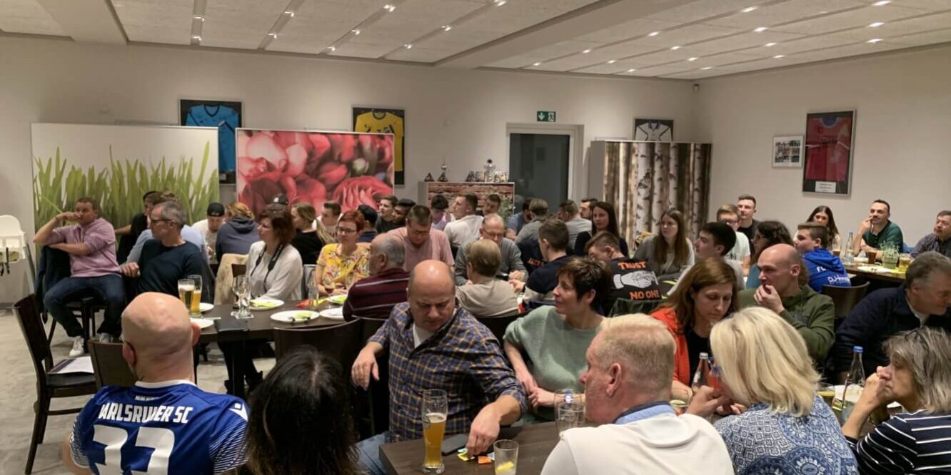 Das Vorstandsteam erhielt für die Personalentscheidungen viel Applaus, ebenso die anwesenden Marcus Wörner, Philipp Hauk und Frank Matthes. Auf dem Bildschirm lief jetzt eine Fotoshow mit einem Rückblick auf die Winterfeier und es wurden noch zwei Termine bekanntgegeben: Am Samstag, 08. Februar steht das erste Trainingsspiel im Rahmen der Rückrundenvorbereitung auf dem Plan: Gegner ist der Pforzheimer Kreisligist FV Göbrichen. Gespielt wird auf dem Kunstrasenplatz in Diedelsheim und Anpfiff ist um 16 Uhr. Und eine Woche später, am Samstag, 15. Februar steht um 9 Uhr ein Arbeitseinsatz im Talbachstadion auf dem Programm. Hier werden zahlreiche fleißige Helfer für die Pflege der Außenanlage benötigt. Im Clubhaus feierte man bis spät in die Nacht in gemütlicher Runde und ließ sich die italienischen Spezialitäten schmecken.